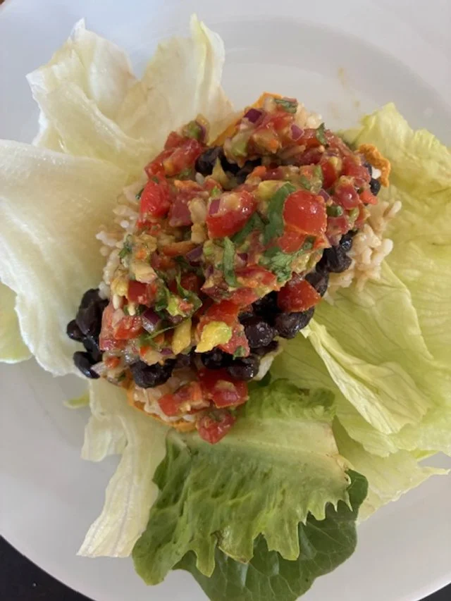 I love burritos but my body struggles with a tortilla, beans AND rice in one meal. The combination of black beans and brown rice is divine when it is accompanied with a light guacamole dominated by tomatoes and lots of crunchy lettuce! Introducing the iceberg lettuce burrito. All the satisfying, satiating ingredients tucked inside the crisp leaves of iceberg lettuce.
