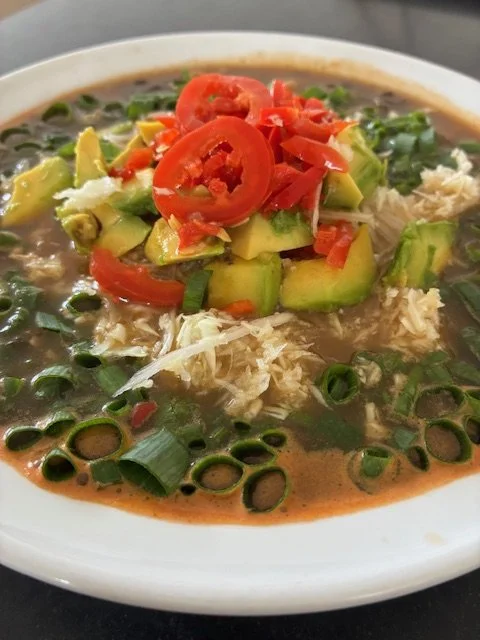 Serve in large bowls topped with shredded green cabbage, sliced avocado or a heaping spoonful of cashew nut ‘sour cream, finely chopped cilantro and chopped jalapeno peppers.