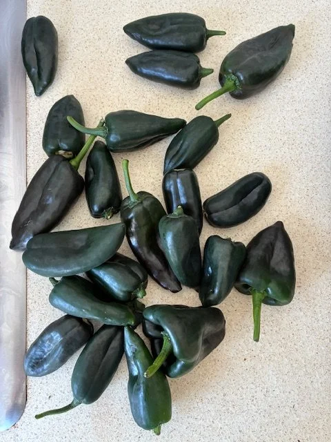 All these beautiful, fresh poblano peppers got me scrambling through my trove of recipes looking for those that included poblano peppers. Pozole Verde jumped out at me as one to try. This vegetarian rendition comes from Lisa Donovan at NYT cooking.