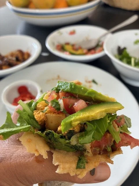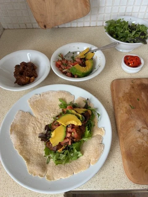 For burritos, I use homemade flour tortillas (post dated 18 January 2026). For the filling, I include four components - beans, a nut ‘cheese’ and/or avocado, pico de gallo and lettuce leaves. Two optional additions are salsa and pickled jalapenos.