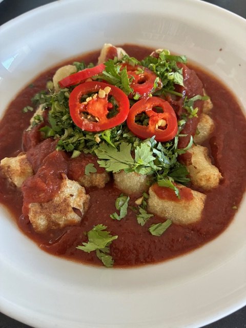 It’s delicious on cauliflower gnocchi with fresh cilantro and homemade jalapeño pickles!