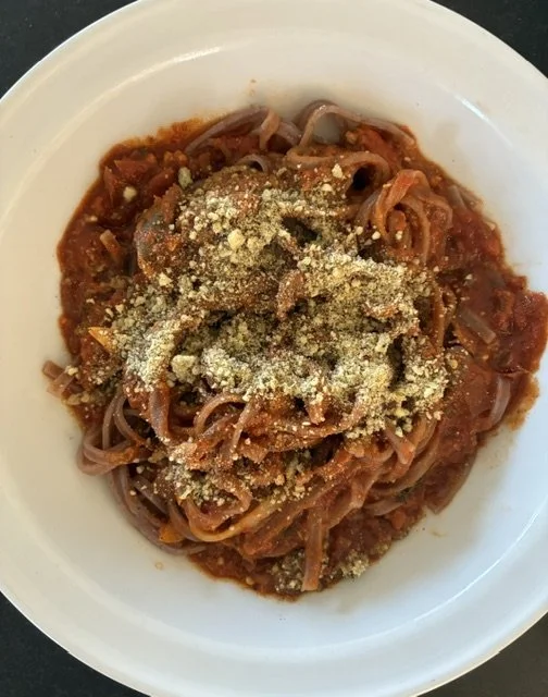 Bring a pot of filtered water to a boil and cook the brown rice pasta according to package instructions. Serve the pasta and ladle the sauce on top. Sprinkle with cashew hemp seed parmesan ‘cheese’ if desired.