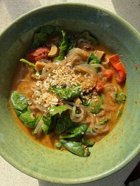 Laksa is one of the many loves I developed from living in Malaysia. Learning how to make it myself was a liberation and joy! Every once in a while, I crave a bowl so I make a big pot and freeze half of it so when my craving strikes again I have it on hand. I prefer this version to those I can buy at restaurants. This is fresh, clean and just as spicy and flavourful as I like it. It has no unwanted, processed oils, instant stocks, MSG or any other unwanted ingredients. Choose organic sweet potato noodles and it is grain free. Use No fish sauce and it is vegan. Neither sacrifice flavour!